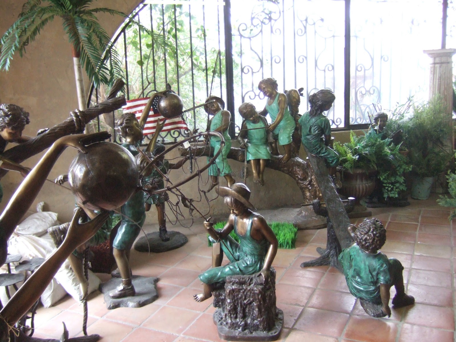 Take note of the carving above the B-B-Q in the background and the metal cowboys on the lower right.
